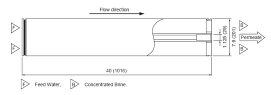 | 较小透过水量 | 8,200 gpd (31m3/d) | |