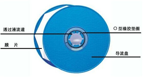 DT膜技术即碟管式膜技术,分为DTRO(碟管式反渗透)和DTNF(碟管式纳滤)两大类,是一种专利型膜分离设备。它的膜组件构造与传统的卷式膜截然不同,原液流道:碟管式膜组件具有专利的流道设计形式,采用开放式流道,料液通过入口进入压力容器中,从导流盘与外壳之间的通道流到组件的另一端,在另一端法兰处,料液通过8个通道进入导流盘中,被处理的液体以较短的距离快速流经过滤膜,然后180º逆转到另一膜面,再从导流盘中心的槽口流入到下一个导流盘,从而在膜表面形成由导流盘圆周到圆中心,再到圆周,再到圆中心的双”S”形路线,浓缩液较后从进料端法兰处流出。DT组件两导流盘之间的距离为4mm,导流盘表面有一定方式排列的凸点。这种特殊的水力学设计使处理液在压力作用下流经滤膜表面遇凸点碰撞时形成湍流,增加透过速率和自清洗功能,从而有效地避免了膜堵塞和浓度较化现象,成功地延长了膜片的使用寿命;清洗时也容易将膜片上的积垢洗净,保证碟管式膜组适用于处理高浑浊度和高含砂系数的废水,适应更恶劣的进水条件。