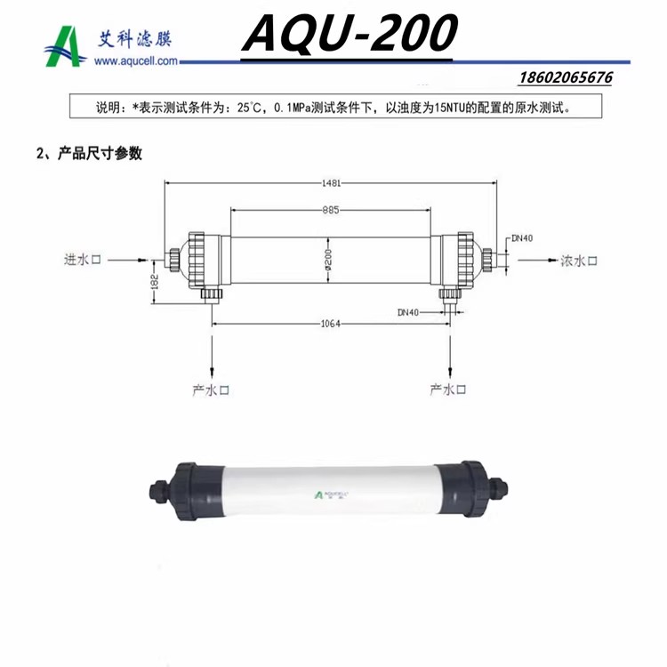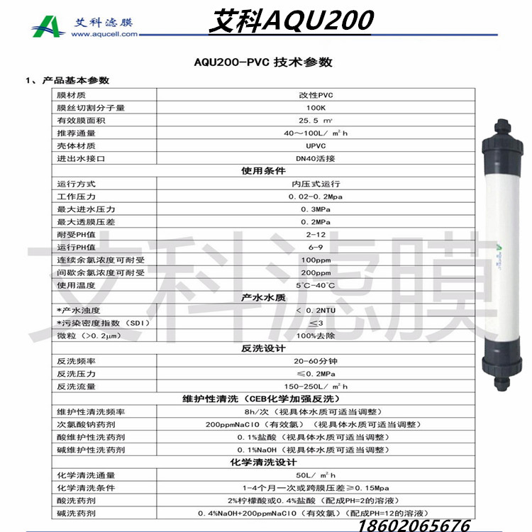 我司广东经销艾科AQUCELL超滤膜:改性PVC材质型号可挑选:4寸AQU90、6寸AQU160、8寸AQU200、10寸AQU250,外壳材质有UPVC、有机玻璃、食品级ABS等和切割分子量6000到10万各种规格认识选购,欢迎订购,量大从优。